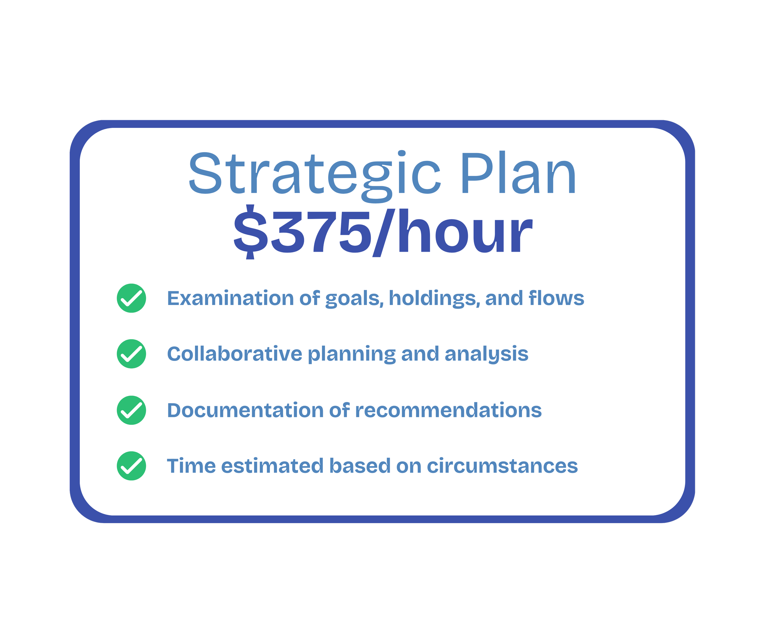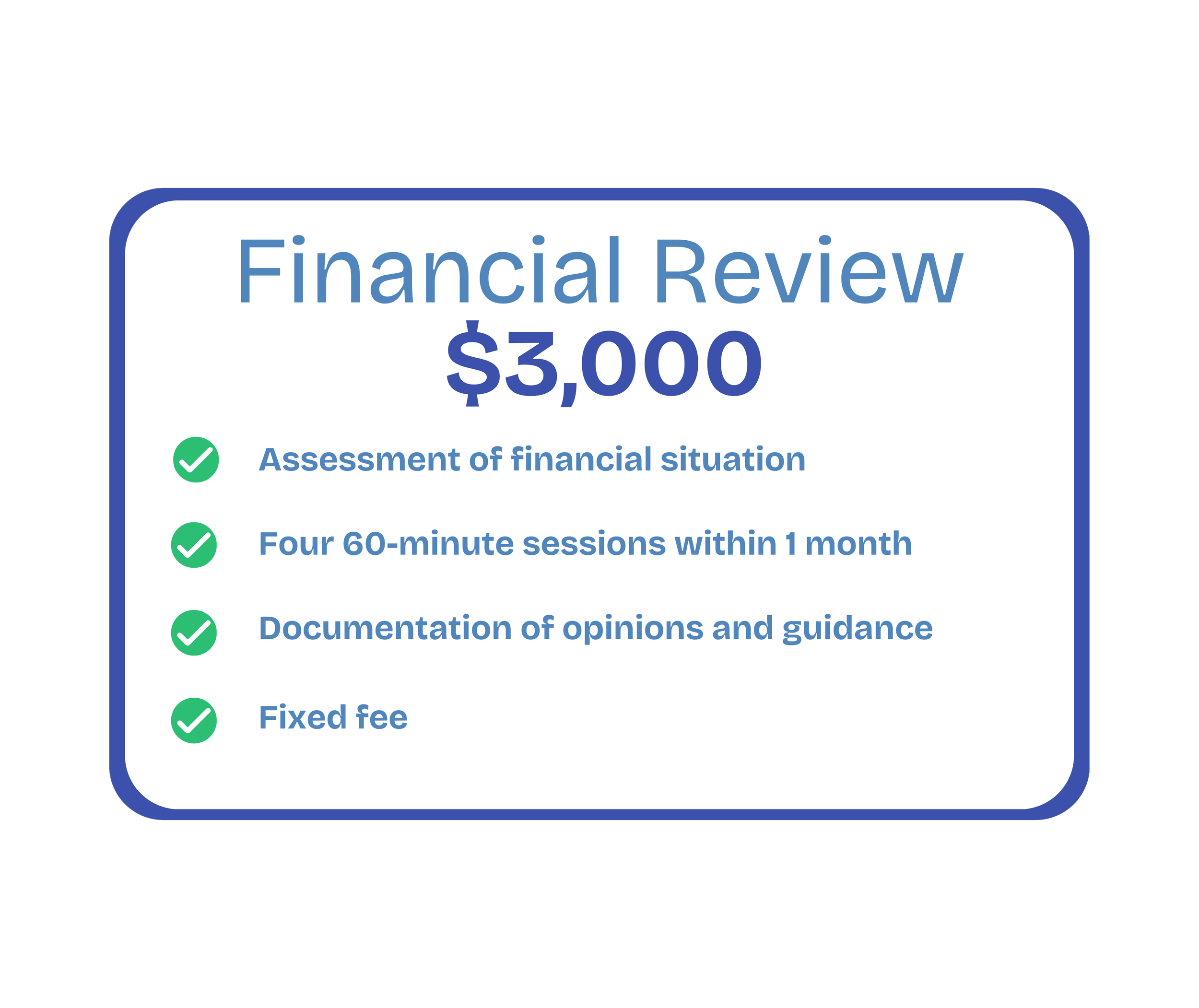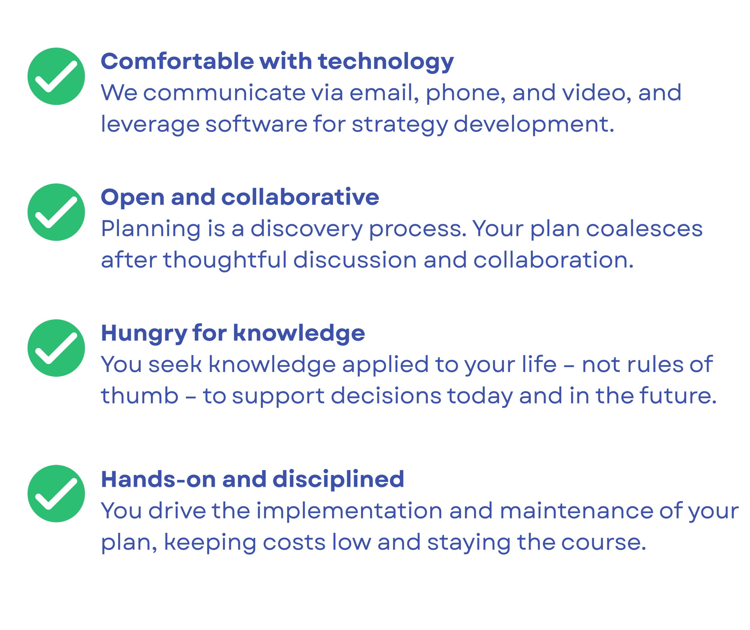 If you are a DIY accumulator with well-defined goals and organized records, the Financial Review is likely sufficient. Otherwise, a Financial Plan would be appropriate. We will assess during a free discovery call.